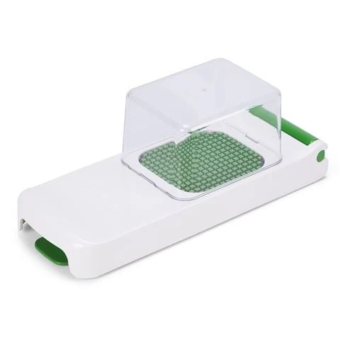 This simple-to-use gadget features a compact design and is perfect for use with your favourite ingredients. Simply place your foods on the small grid and push the top section downwards – in seconds, your food is finely chopped and is pushed into the clear food collector ready to be tossed into your dishes.