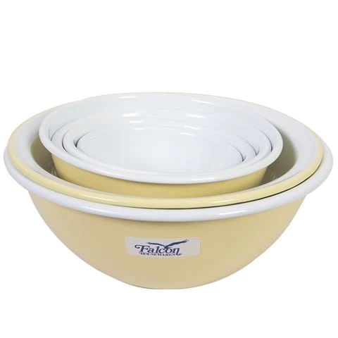 This Deluxe Prep Set is charming in yellow and white, adding a pop of colour to your kitchen space. Crafted from enamel, the set of six is durable for everyday use. With a big bowl enough to make a cake right down to small dishes for nibbles. No task is too mighty for Falcon Enamelware.