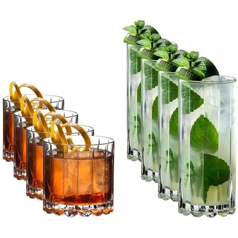 - Classic tumblers for spirits on the rocks or tall for mixers